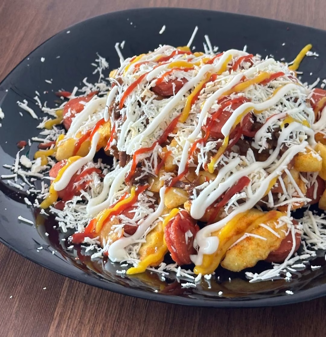 Salchipapa con papas crujientes, salchicha ranchera, queso rallado y las mejores salsas. Personalízala con tus toppings favoritos como carne desmechada o chicharrón. ¡Elige tu versión ideal en Casa LOHO! 🍟✨